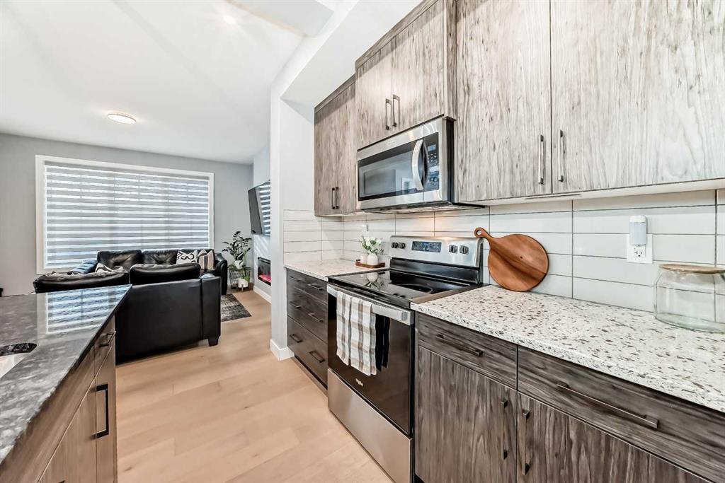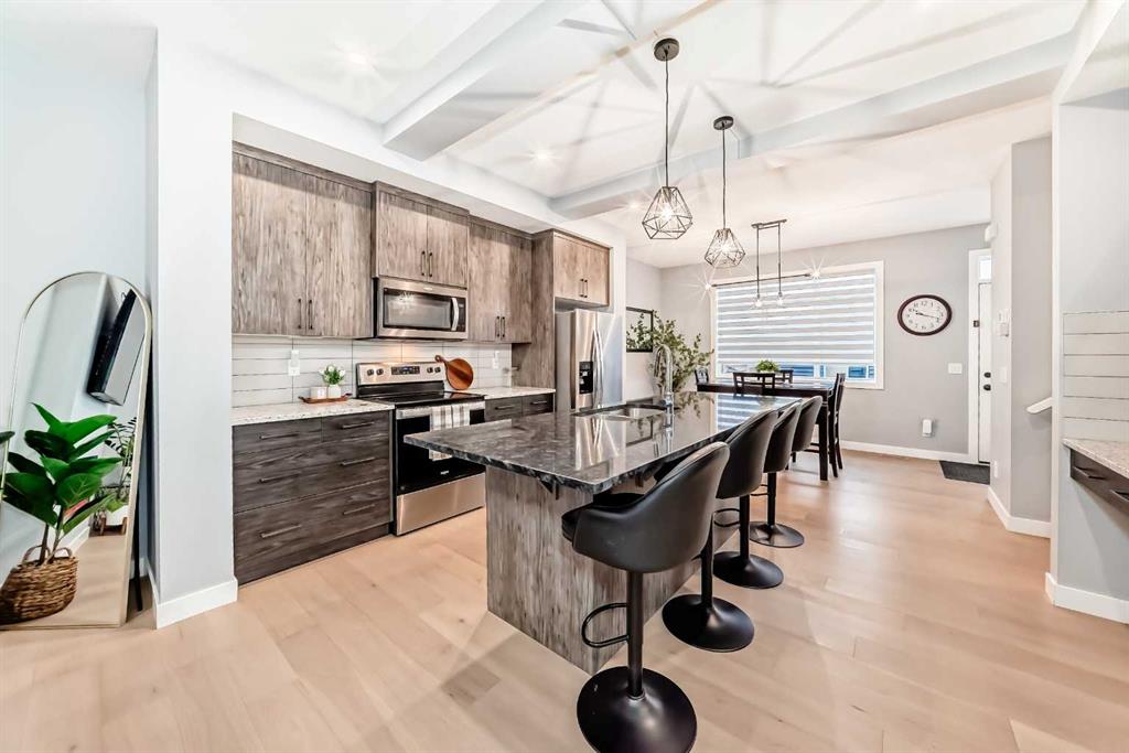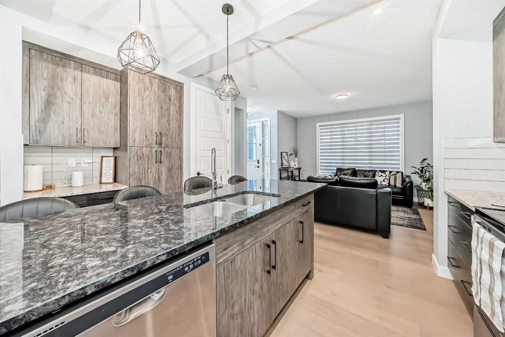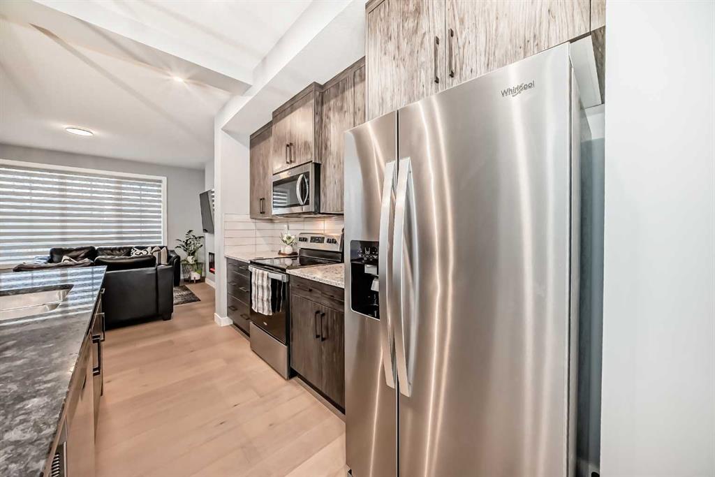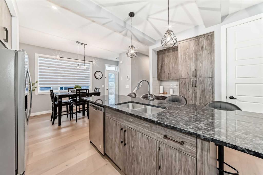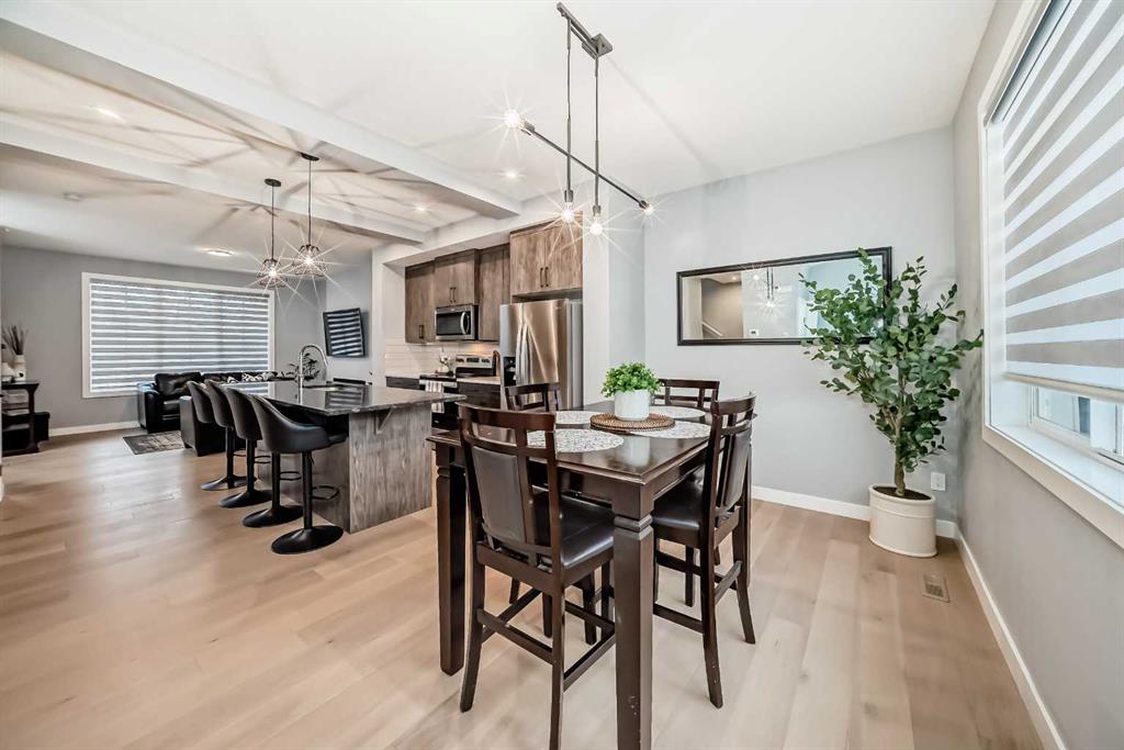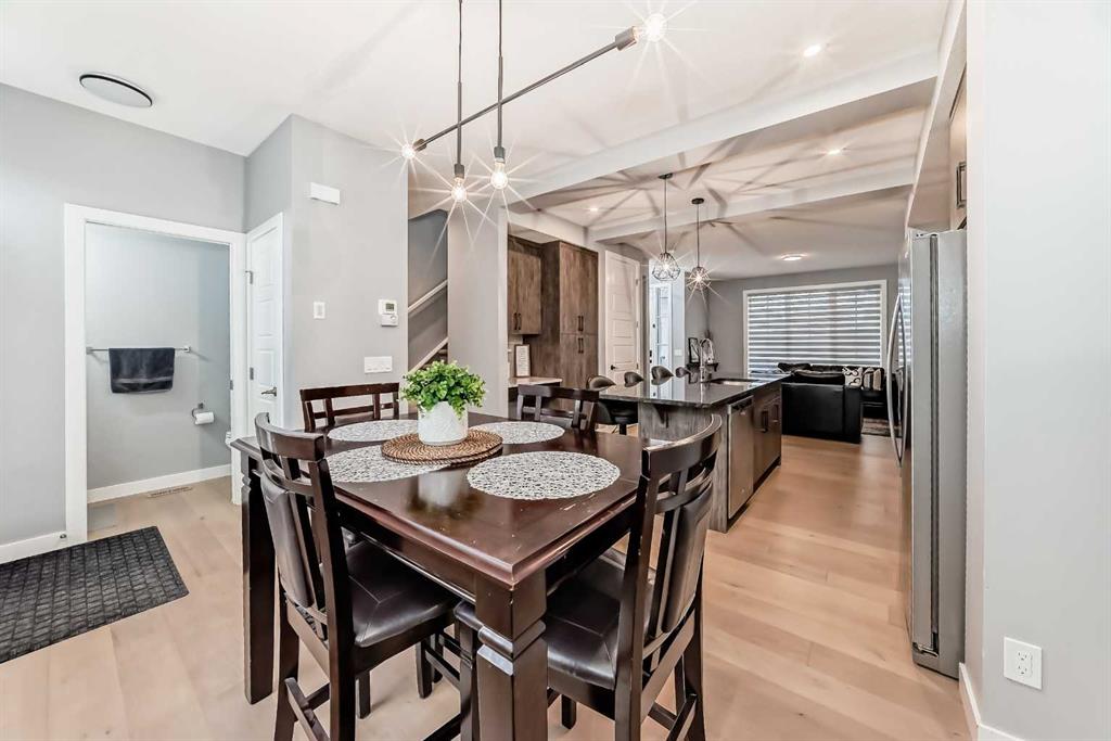 Welcome to your bright sanctuary in the heart of sought-after Lanark community in Airdrie! A beautifully finished half-duplex with side entrance that checks every box and then some. Sunlight pours through big windows from the moment the day begins, lighting up the vinyl flooring that flows effortlessly through the entire main level. The open concept main floor feels so spacious yet cozy, perfect for morning coffee with the sun streaming in and family dinners that spill from kitchen to living room that will surely be enjoyable. The kitchen really shines with sleek quartz counters tops, a thoughtful layout, plenty of storage, beautiful cabinetry and a design that makes cooking or just hanging out at the island so wonderful. Tucked just off the main floor is a convenient powder room, and upstairs you’ll discover three generous bedrooms, two full bathrooms, and a laundry area. No more lugging baskets up and down the stairs. The primary bedroom is bright and spacious with 3 piece-ensuite and walk-in closet. At the back, there's an oversized double-car garage where you can park big SUVs. This property is located just off 40 Avenue with fast access to Highway 2, so you get the peace and the community-feel of Lanark with an easy commute into Calgary and Cross Iron Mills whenever you need it. This isn’t just a house, it’s the home you’ve been waiting for, bright, modern, practical, and ready for your life and cherished memories! MLS®: A2282762 - Lanark 2 Storey,Attached-Side by Side $539,900