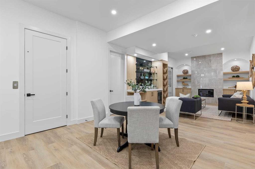 Extraordinary luxury residence in prestigious Patterson Heights-The Point- with over 4500 sq ft of living space, where thoughtful design and upscale finishes define every detail. As you enter, you're greeted by a grand entrance, boasting a floor to ceiling custom built closet. To your right is a beautifully appointed mudroom featuring a walk-in closet and impressive floor to ceiling wall unit, with direct access to the oversized double garage that's fully equipped with EV charging outlets, gas rough in for heater, hot and cold water taps. A full bathroom featuring quartz countertops and a floor-to-ceiling glass shower. Soaring 10 ft ceilings and wide vinyl plank flooring flow throughout, creating a seamless, elegant feel. The cozy living room is enhanced by a modern wall unit and ambient LED lighting, while the custom bar area complete with bar fridge, is perfect for entertaining. A private bright gym space with recessed lighting, sleek floating shelving and plenty of room for fitness equipment. The open riser staircase, paired with a PRIVATE ELEVATOR for ultimate convenience, leads to a show-stopping second floor. A light-filled home office overlooks a large window, and a modern half-bath. The stylish dining area is anchored by a built-in LED-lit beautiful wall unit, the glass sliding doors provide access to a balcony with breathtaking views of downtown Calgary. The coffered ceiling family room stuns with an art-block feature wall and gas fireplace. The sliding glass door gives access to a fully finished, landscaped backyard that backs onto serene green space, where wildlife sightings are frequent and peaceful. The kitchen is a true centerpiece with an elegant quartz waterfall island and hidden cabinetry, two-tone modern cabinets, high-end stainless appliances, and a fully equipped spice kitchen for hosting large gatherings. A modern kitchen nook with an exquisite light fixture completes this level. The top floor is an oasis of luxury, starting with a grand primary suite behind French doors. Enjoy a private balcony with views of the green space, a juice bar, in-floor heating in the en-suite, and a spa-style bath featuring a freestanding tub, floor-to-ceiling glass steam shower with rainfall head and granite seating. The second and third bedrooms share a beautiful Jack & Jill bathroom with quartz counters, and a fourth bedroom along with its own full bath and walk-in closet. Don't miss the thoughtfully finished laundry room. The bonus room is a standout, with downtown views, and another wall unit. This level boasts 9 ft ceilings, continuing the home’s spacious and airy feel. ADDITIONAL UPGRADES: Basement rough in under slab heating, 75 gallon hot water tank, 2 high-efficiency furnaces, 2 central A/C units, extensive built-ins. The exterior is fully landscaped, composite rear deck with a gas line.This is a true masterpiece offering luxury, comfort, and functionality across all three levels complete with elevator access. A rare offering in an exceptional location. MLS®: A2260705 - Patterson 2 Storey $2,378,000